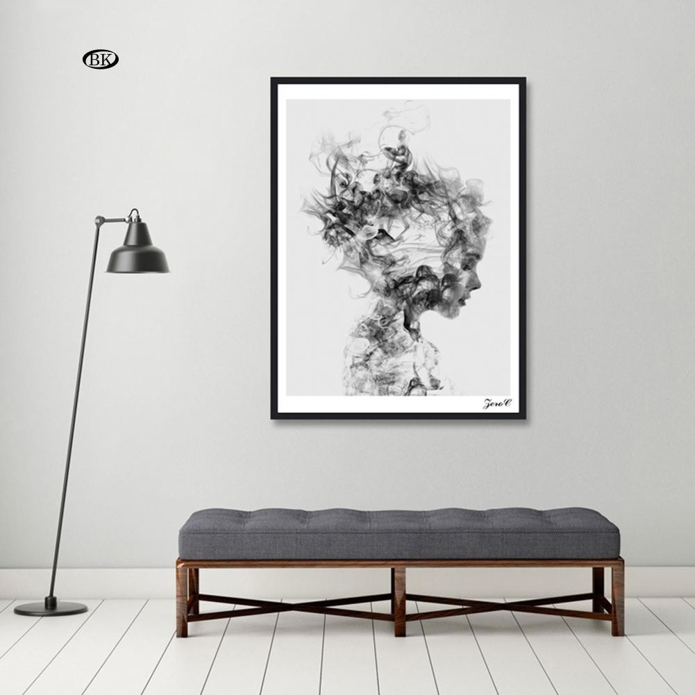 Bk Modern Nordic Decor Black White Girl Poster Canvas Painting Wall Art Pictures Shopee Philippines